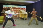 | Dottie: | Yes. (Charles takes the ball and performs a sequence of impressive manoeuvres) Are you going to shoot, then? |